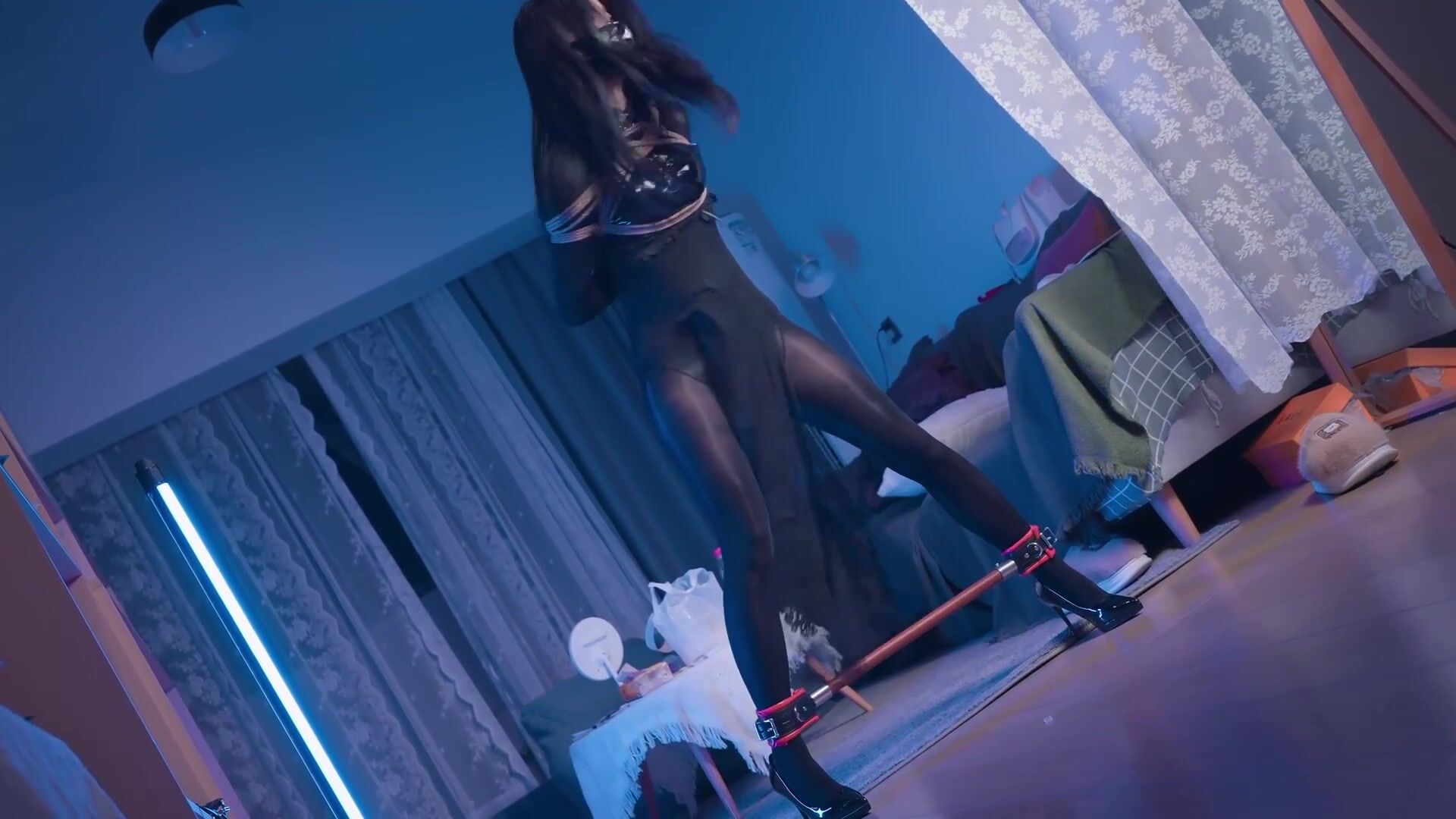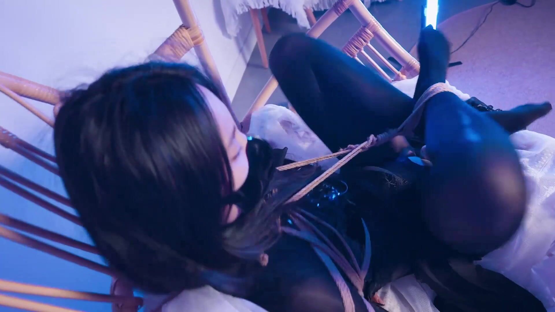 【悠米】《神圣修女被绑记》4 全包黑丝修女以一种痛苦的团缚姿势绑在吊篮里,绳子绕在脖子后无法动弹,被迫被棒棒强羔